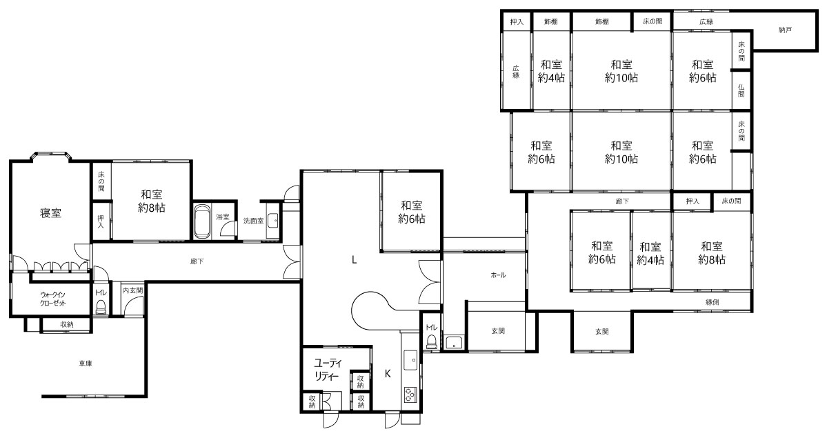 | 間 取 | 12LDK | 間取内訳 | 洋室8帖、和室4畳×2、和室6畳×5、和室8畳×2、和室10畳×2 |