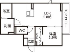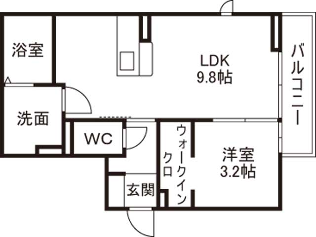 | 間 取 | 1LDK | 間取内訳 | LDK・9.8,洋・3.2 |