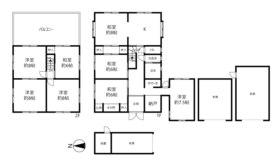 | 間 取 | 8DK | 間取内訳 | 洋室:8帖、8帖、8帖、7.5帖 和室:8帖、6帖、6帖、6帖 |
